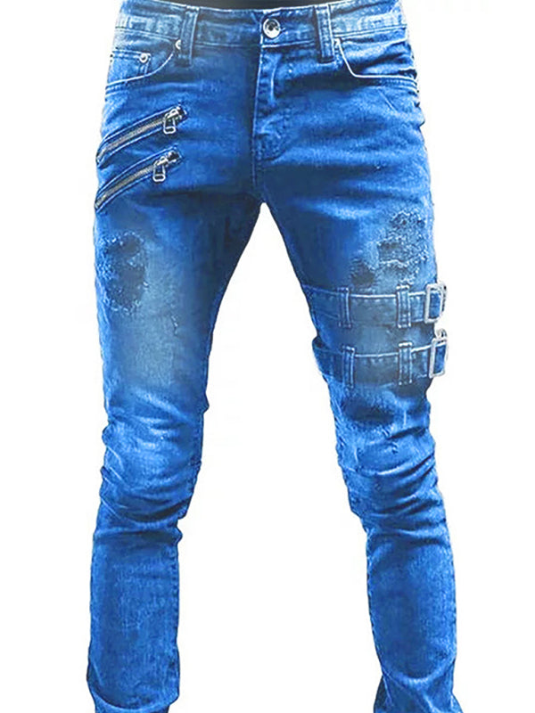 Jeans ajustados rasgados de cintura media de moda para hombres